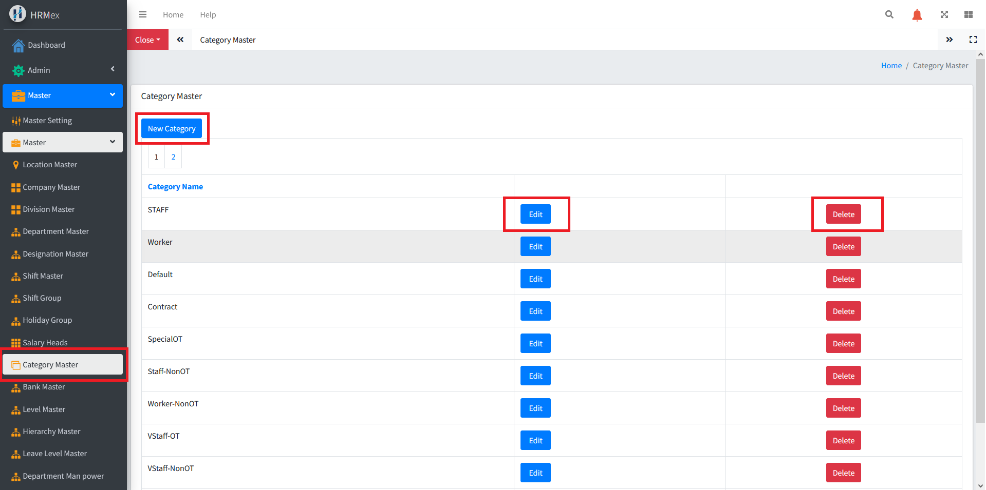 The Category Master interface provides the tools necessary for managing employee categories. Here's how to use this feature: