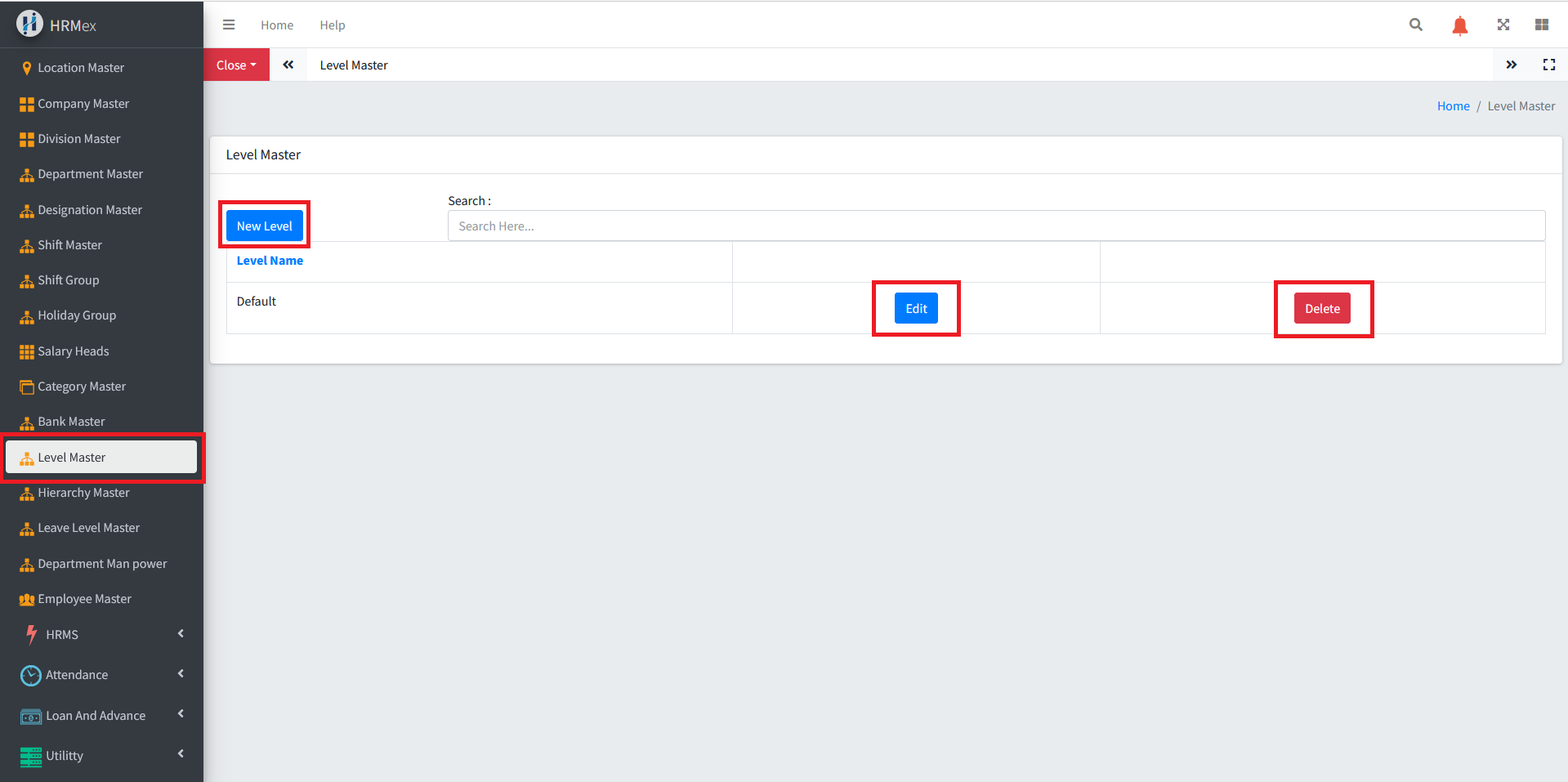 The "Level Master" feature in HRMex Time and Attendance software, accessible from the "Master" menu, is a vital tool for managing the levels associated with employees. This feature allows users to add, edit, and delete level details, providing accurate information for employee classification.