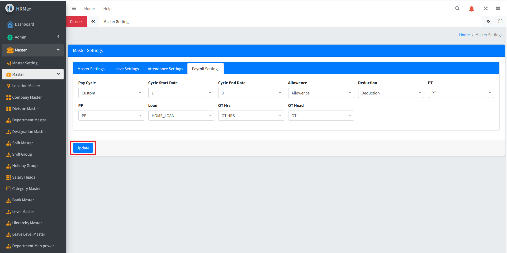 The "Master Settings" menu in HRMex Time and Attendance software, accessible from the "Master" menu, plays a crucial role in configuring essential parameters for various HR processes. This guide outlines the key features and steps involved in setting up master settings.